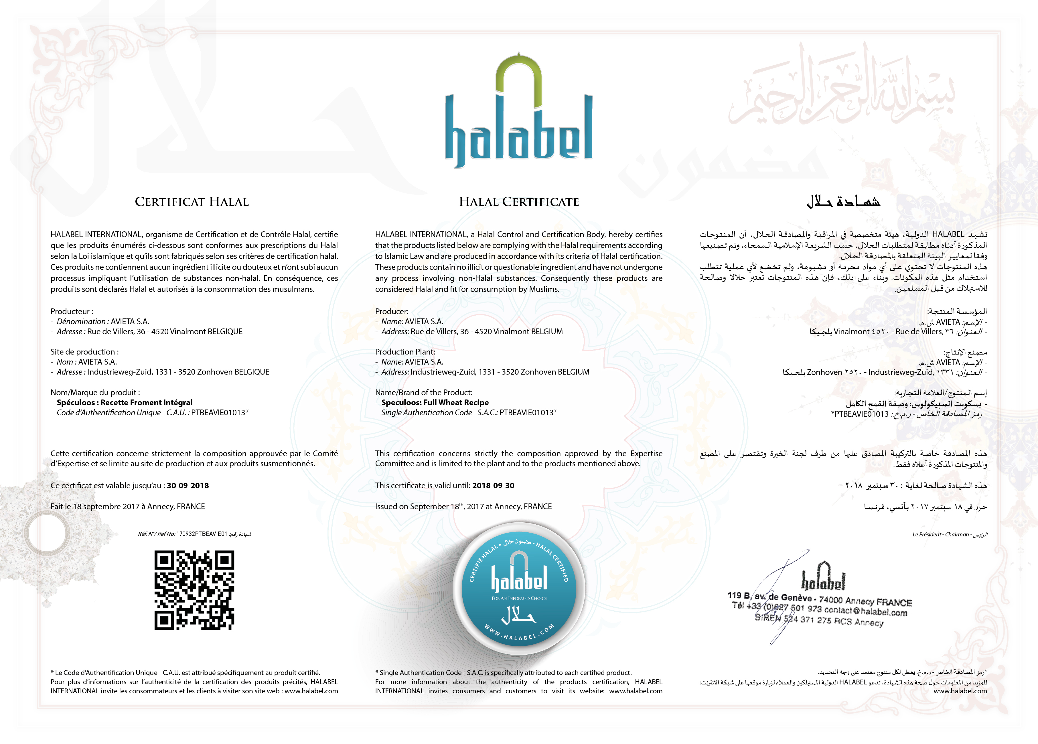 - – Biscuits Spéculoos (Recette Nationale) - CAU : PTBEAVIE01012 produit non certifié actuellement.